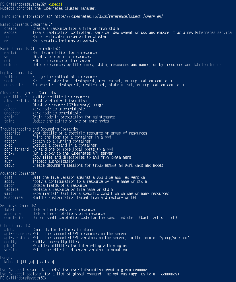 3. 이후 powershell에서 kubectl 테스트