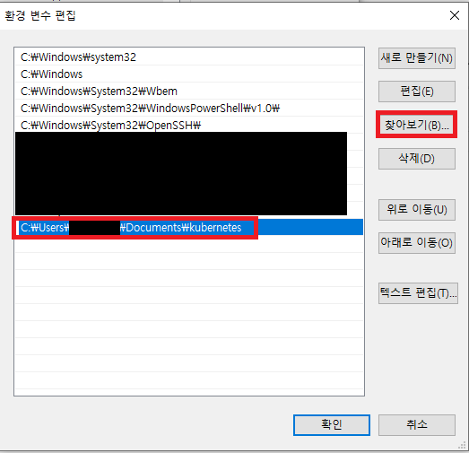 2. kubectl.exe 가 있는 폴더에 Path설정