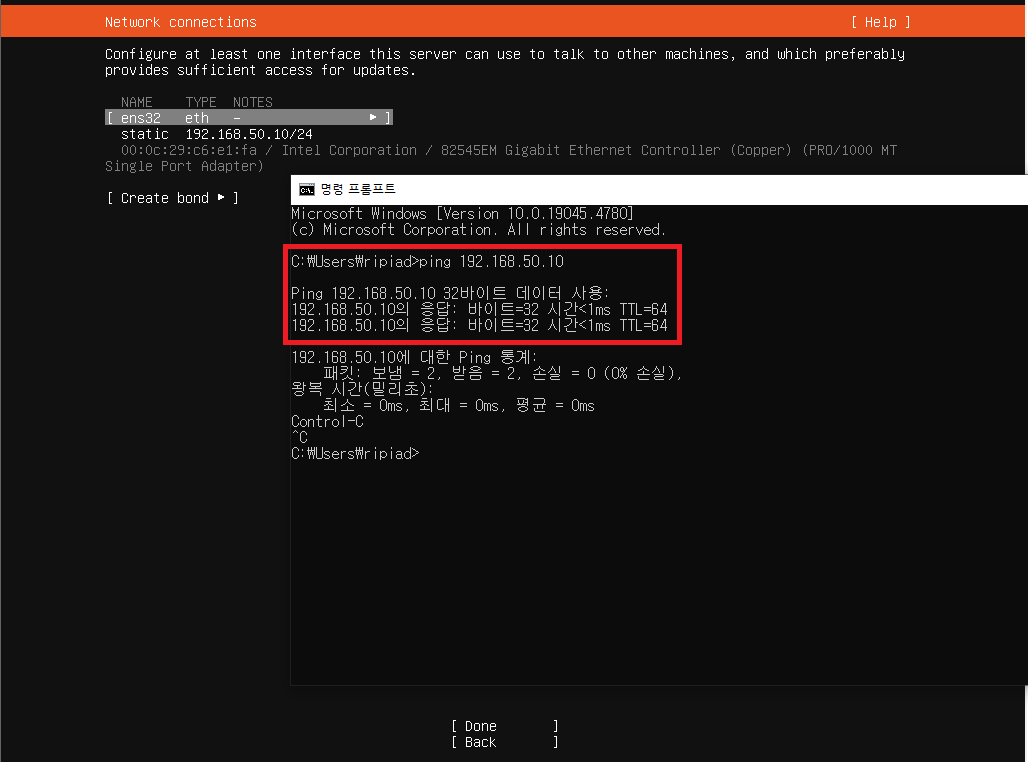 192.168.50.10에 ssh 연결 후 아래 명령어 입력